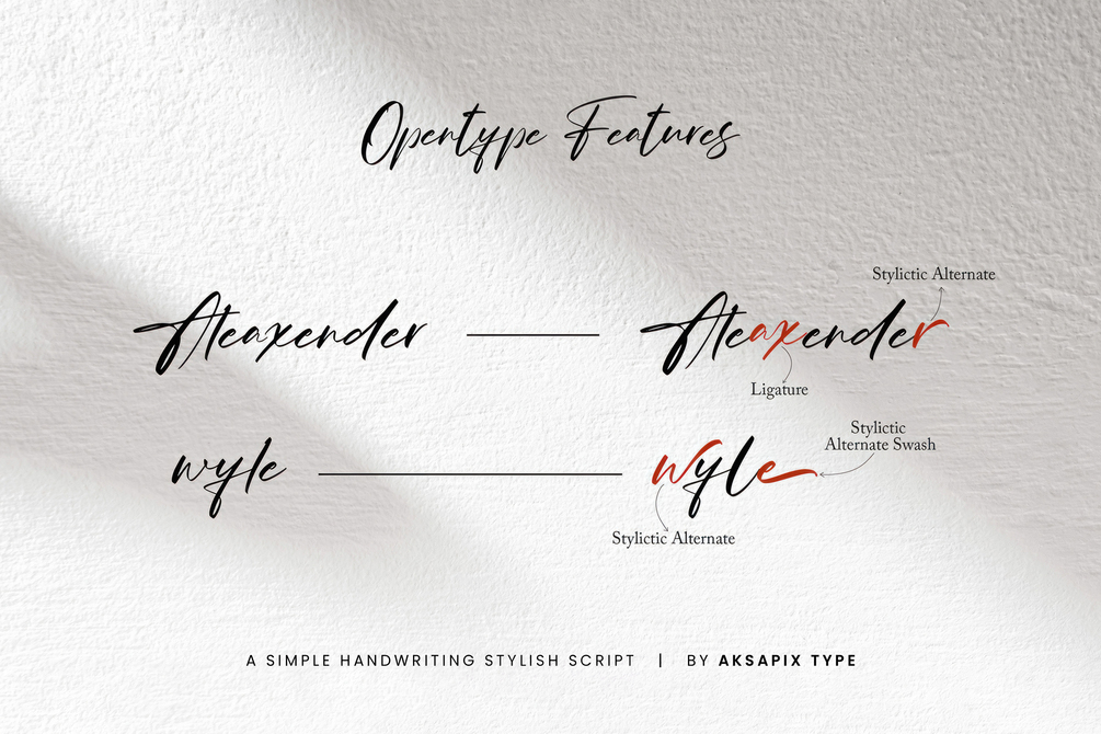 - Stylistic Alternates: Enhance your designs with the option to choose from stylistic alternates, allowing you to experiment with different letterforms and create a unique visual impact.