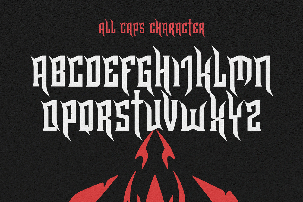 Create bold and dramatic designs with Horn King - Gothic Typeface. Whether you’re designing striking book covers, fierce metal band logos, or intricate tattoo art, Horn King brings a gothic flair to your projects.
