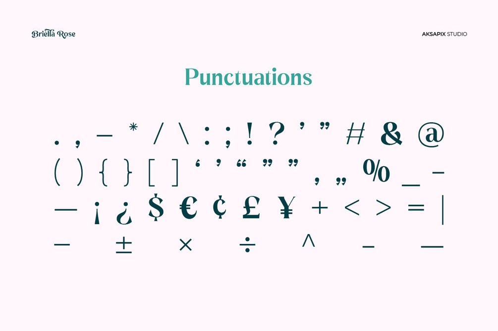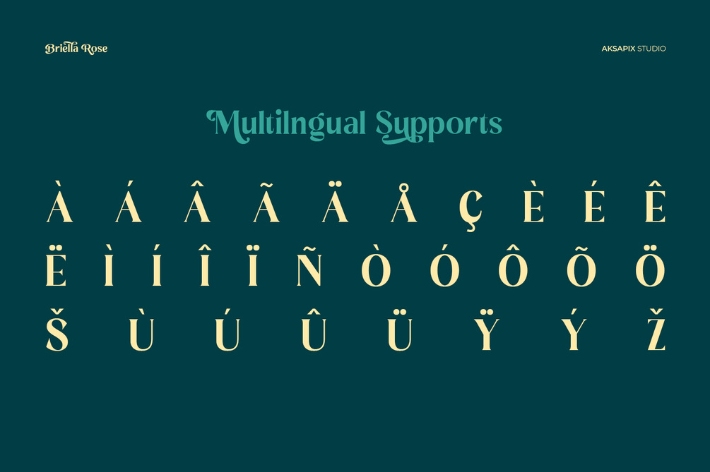 Get ready to elevate your designs to new heights with Briella Rose - the epitome of beauty and sophistication in the world of typography. With its graceful serifs and enchanting curves, Briella Rose adds a touch of timeless elegance to any project. Whether you're designing wedding invitations, branding materials, or editorial layouts, Briella Rose shines in every context, adding a touch of sophistication and charm to your creations.