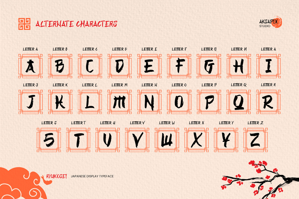 Embark on a journey to the heart of Japan's rich cultural heritage with Ryukosei - a captivating display font inspired by the elegance and beauty of Japanese calligraphy. Whether you're designing posters, packaging, branding materials, or digital art, Ryukosei fonts ensure stunning results in any context. Its unique character and style add visual interest and depth to your creation, setting it apart from the rest.